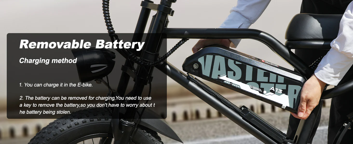 Rüsten Sie Ihr Fahrrad mit unserem diebstahlsicheren, herausnehmbaren Akku auf – laden Sie ihn direkt am E-Bike oder nehmen Sie ihn mit einem Schlüsselschlosssystem sicher ab, um ihn in Innenräumen aufzuladen. Keine Angst mehr vor Diebstahl oder schlechtem Wetter! Perfekt für Teenager und junge Abenteurer, die flexible Ladeoptionen benötigen.