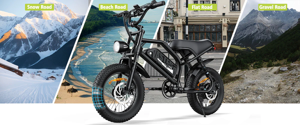 Mit dem Jugend-Mountainbike bist du überall mobil – gemacht für Schnee, Sand, Schotter und Stadtstraßen. Dieses E-Bike mit dicken Reifen ist perfekt für abenteuerlustige Teenager, die jedes Terrain erobern wollen.